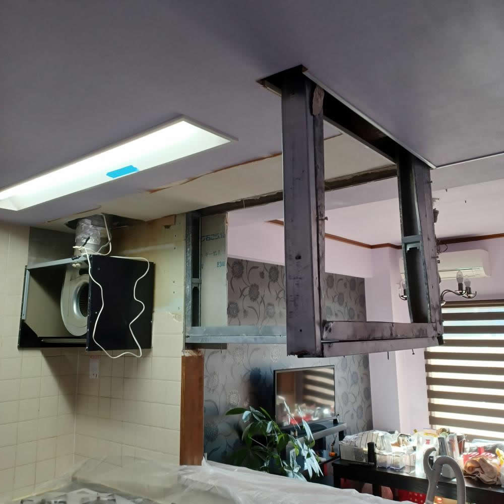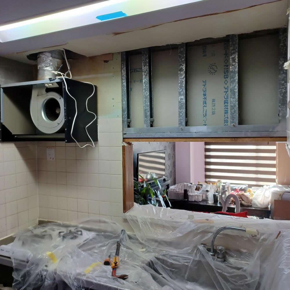 軽量鉄骨で吊り下げられています。ここから換気扇も取り外しました。