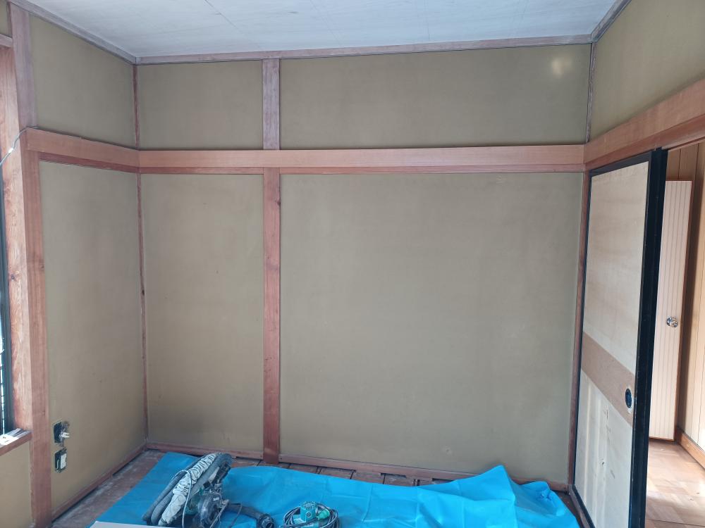 今回は古い戸建てのリフォーム工事ですが昭和チックなお宅だったので壁も聚楽壁で天井もジプトンだったのでそのまま クロスを貼ることが出来ません。