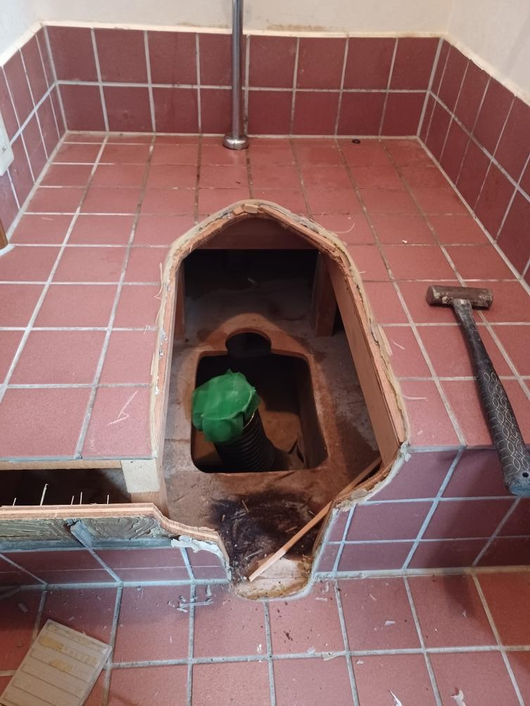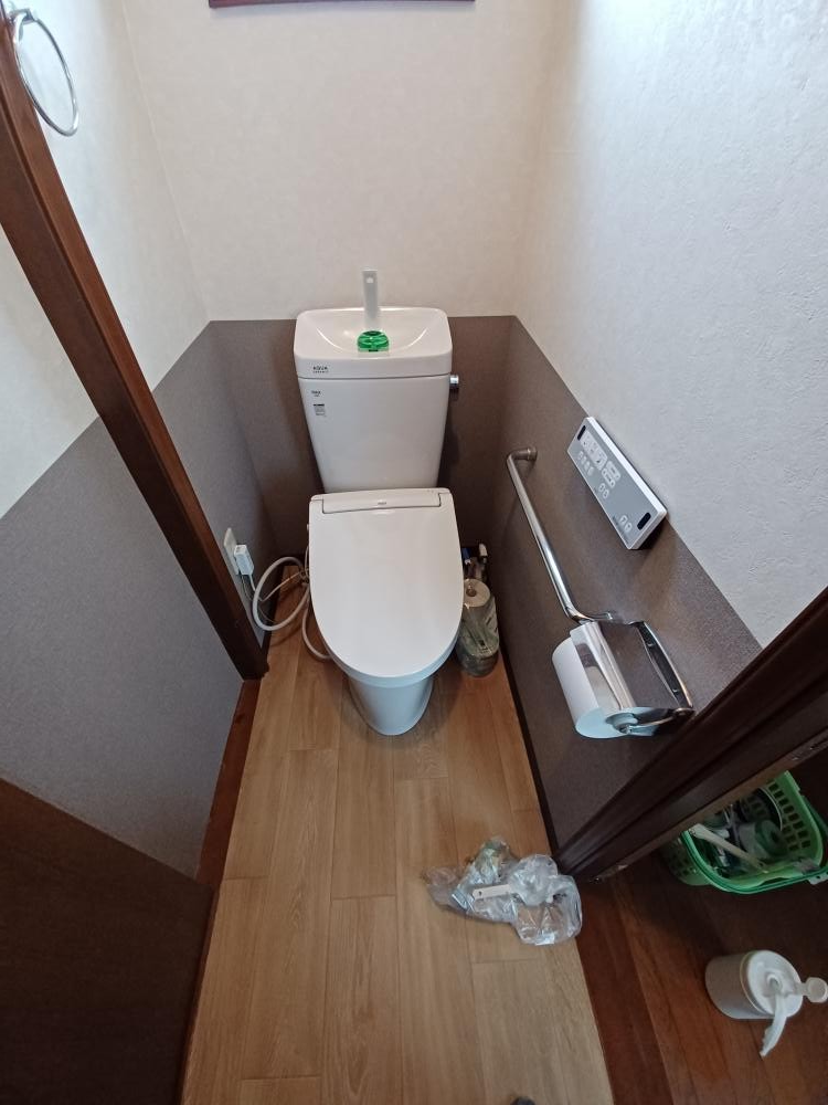 解体して給水管の移動、床や壁の大工仕事、内装して便器の取付やペーパーホルダー等の取付をして完了です。