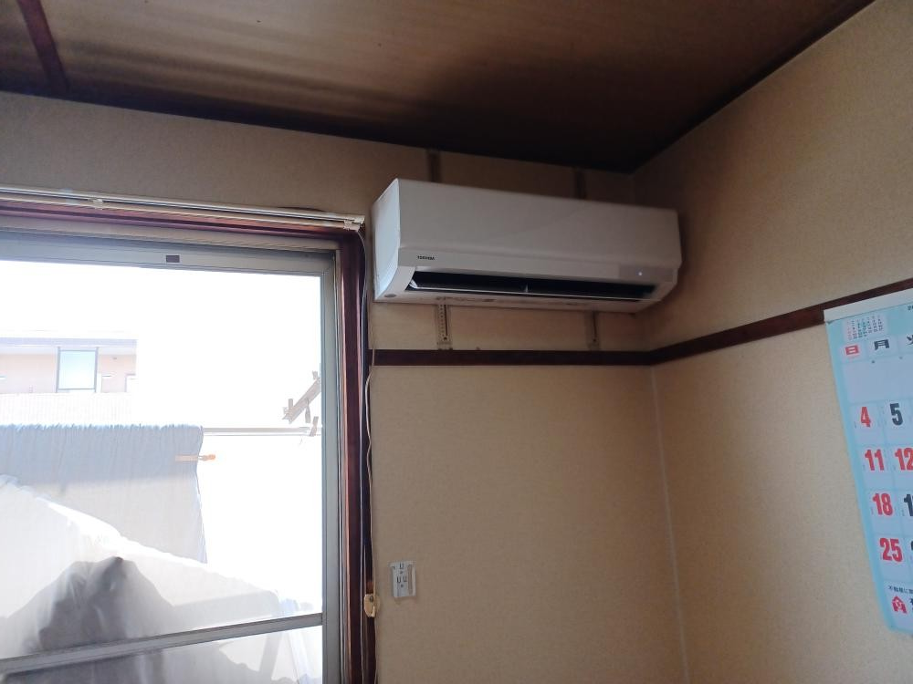 今日はエアコン交換です。2Fだと壁付けや天吊り、地上置きがあります。