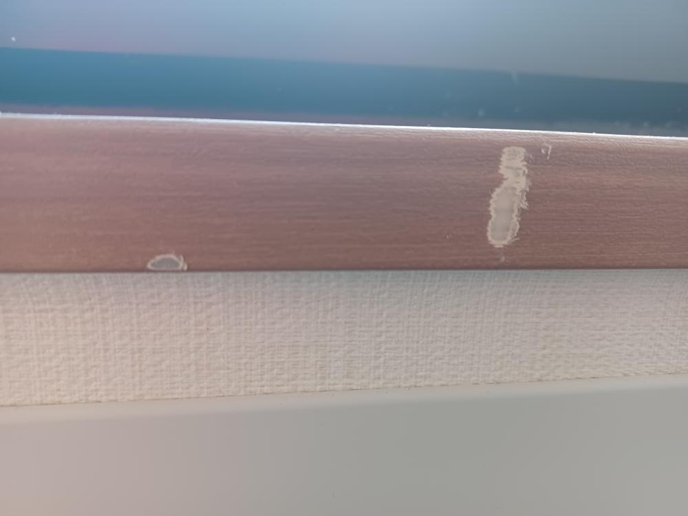 ▼窓枠の修繕です。一般的には木目のシートを貼りますが今回は大工が入替を行いました。